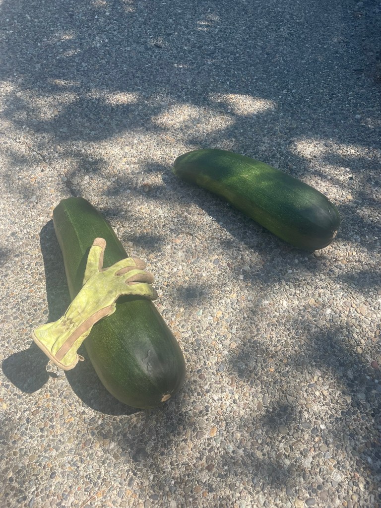 We’ve hit that time of year when I find monsters hiding under leaves I swear I already checked. These things are bold. I pulled two zucchini the size of canoes out of the garden today. I tripped over one of them. I swear it was not there yesterday.